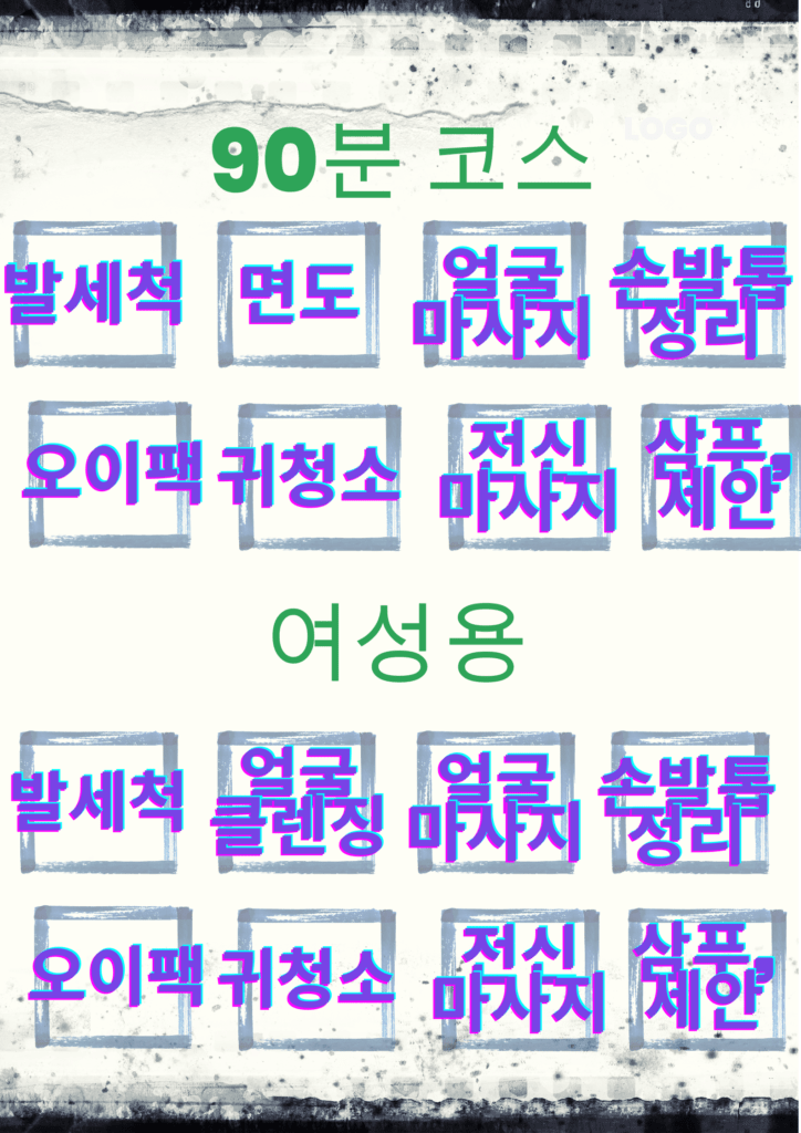 • 스페셜 코스(100분): 풀코스에 허브 오일 마사지, 귀혈 마사지, 유정란 천연 꿀팩, 스팀 마사지, 두피 스케일링 추가.